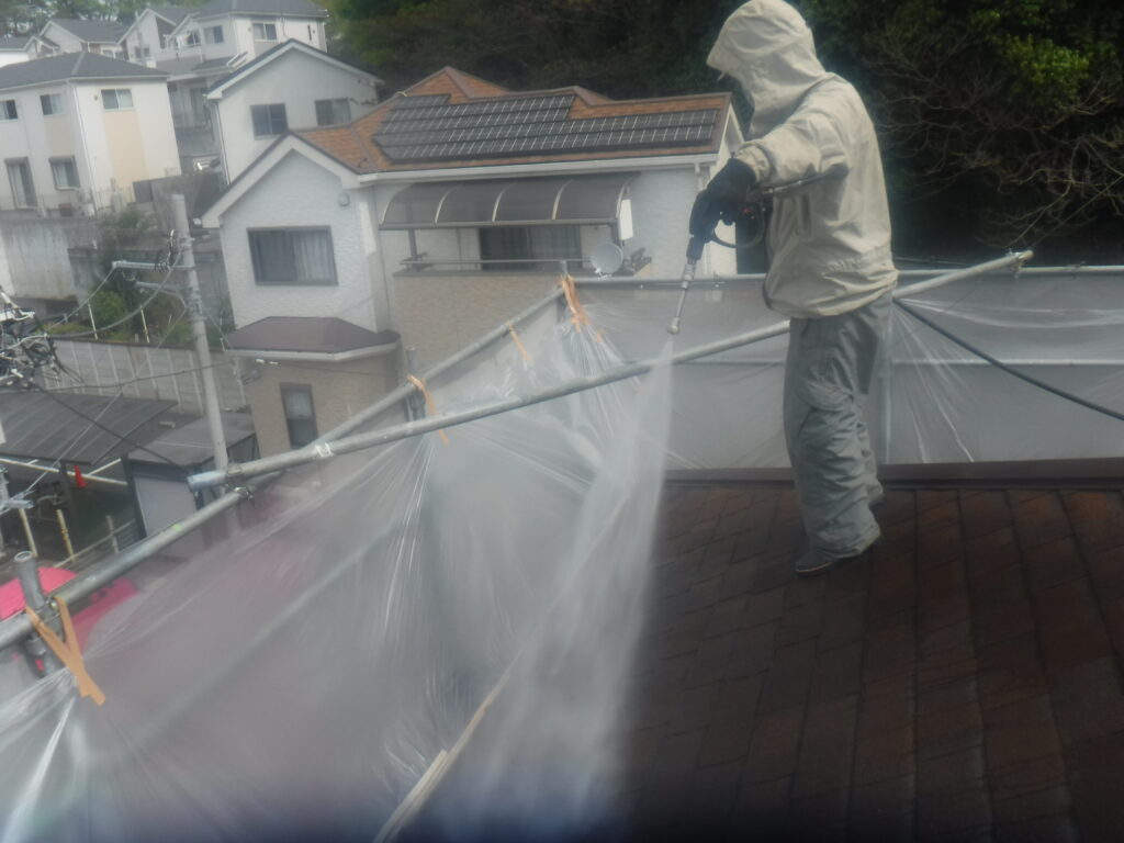 塗り残しが無いか確認しながら塗装します。2~4日作業です。