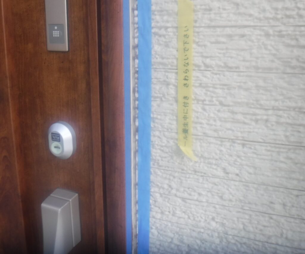 塗装する前に床や窓をビニールで覆います。塗装作業に入るまでに2~3日かかります。